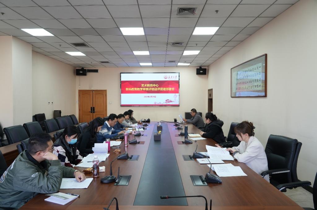 陈晏传达了学校本科教育教学审核评估学院自评自建工作布置会暨培训会相关精神,进一步强调了本科教育教学审核评估工作的重要性。岳智浩详细解读了《太阳集团tyc4633本科教育教学审核评估迎评促建工作方案》等相关文件,介绍了审核评估的主要内容和进度要求,并就艺教中心的工作计划与任务分工进行了安排。