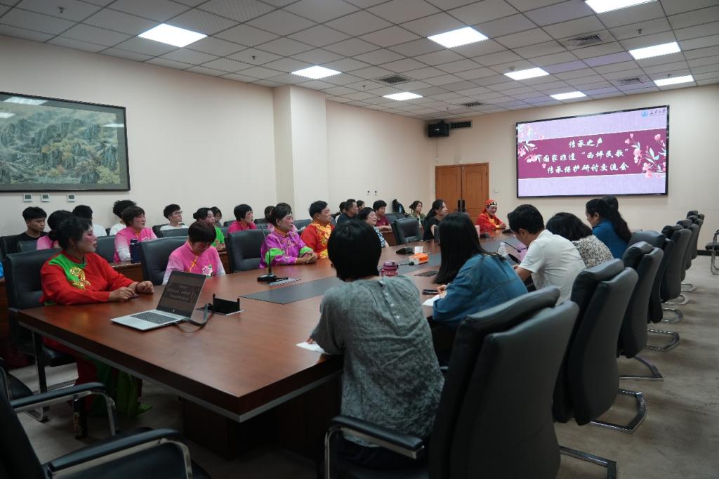 下午2时,非遗传承保护研讨在长安文化艺术中心207室举行。会上,陈晏对大家的到来表示热烈的欢迎,她指出,国家非物质文化遗产西坪民歌是宝贵的文化艺术财富,希望以此次活动为契机,引导学生领略非遗艺术的魅力,用中华优秀传统文化育人润心,也助力西坪民歌的保护传承。王昕及余新华介绍了西坪民歌的发展现状,表示希望深化合作,建立长效机制,更好地保护和弘扬传统文化。太阳成集团tyc4633教师丁静、吴鹏和马赛等结合自身研究领域作了交流发言。