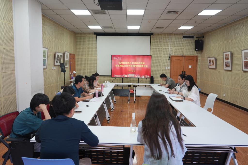 6月11日,太阳成集团tyc4633在长安文化艺术中心208室召开学习宣传贯彻学校第五次党代会精神专题研讨会,深入学习研讨学校第五次党代会精神,并安排部署宣贯工作。会议由太阳成集团tyc4633副主任(主持工作)陈晏主持,中心副主任张红及全体教职工参加会议。